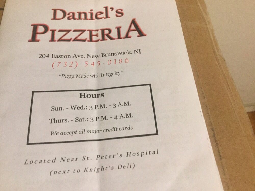 Daniel's Pizzeria, located in New Brunswick, NJ, offers a wide range of delicious pizza options for both dine-in and takeout. Known for their thin and crispy crust, the menu includes traditional favorites like Margherita and pepperoni, as well as unique options like vodka penne pizza. Customers rave about the quality of the sauce, with some even calling it the best in the area. The chicken bacon ranch and chicken vodka slices are popular choices, showcasing the diverse flavors offered. Despite some inconsistency in taste, the overall consensus is that Daniel's Pizzeria is a must-try spot for pizza lovers. With generous portions, fresh ingredients, and a casual atmosphere, this pizza joint is sure to satisfy your cravings.